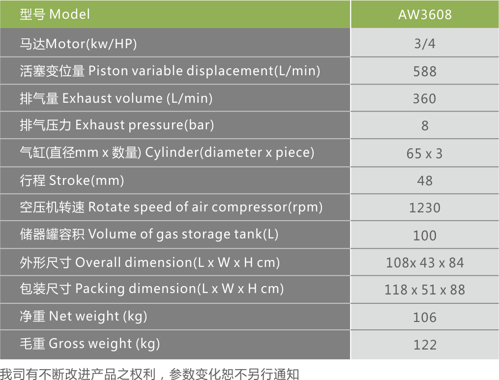 Product name:3KW 8bar new AW3608 piston air compressor