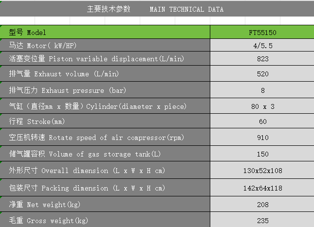 Product name:4KW 8bar FT55150 piston air compressor