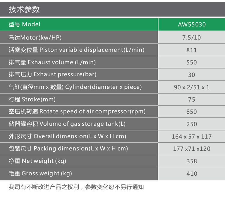 Product name:7.5KW 30bar AW55030 piston air compressor