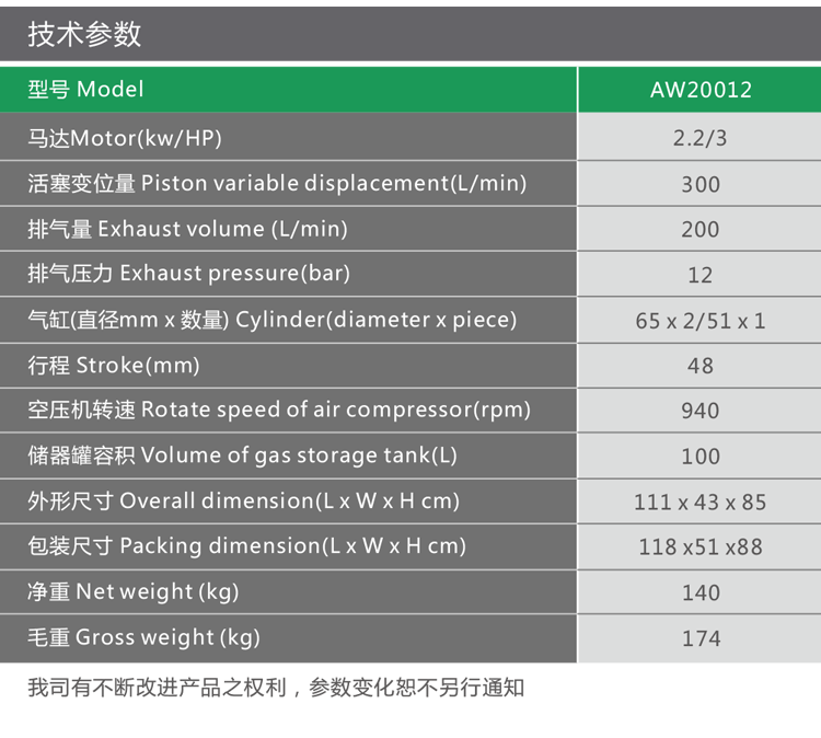 標題:2.2kW/3HP 新型節能環保活塞空壓機 AW20012