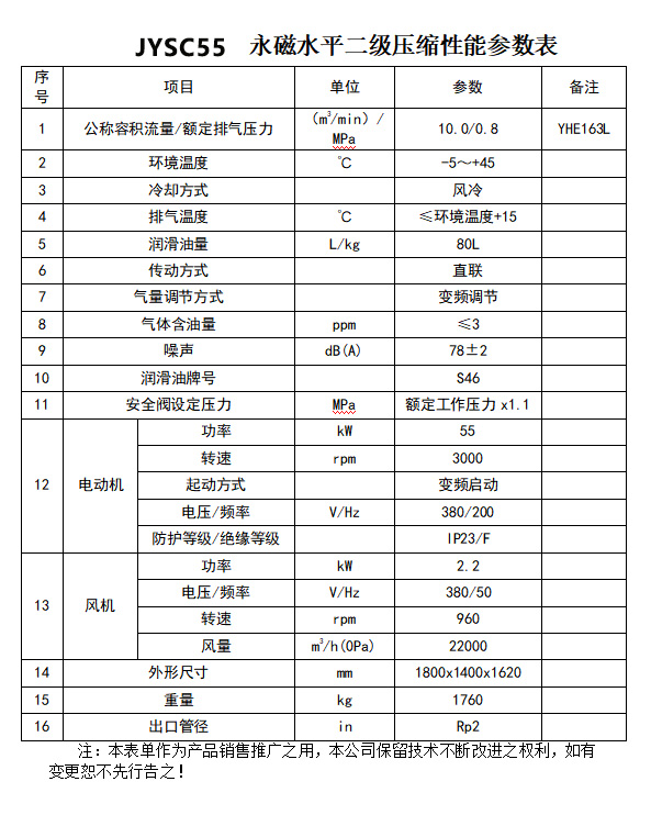產品名稱:55kW 水平雙級直連永磁變頻空壓機 JYSC55
