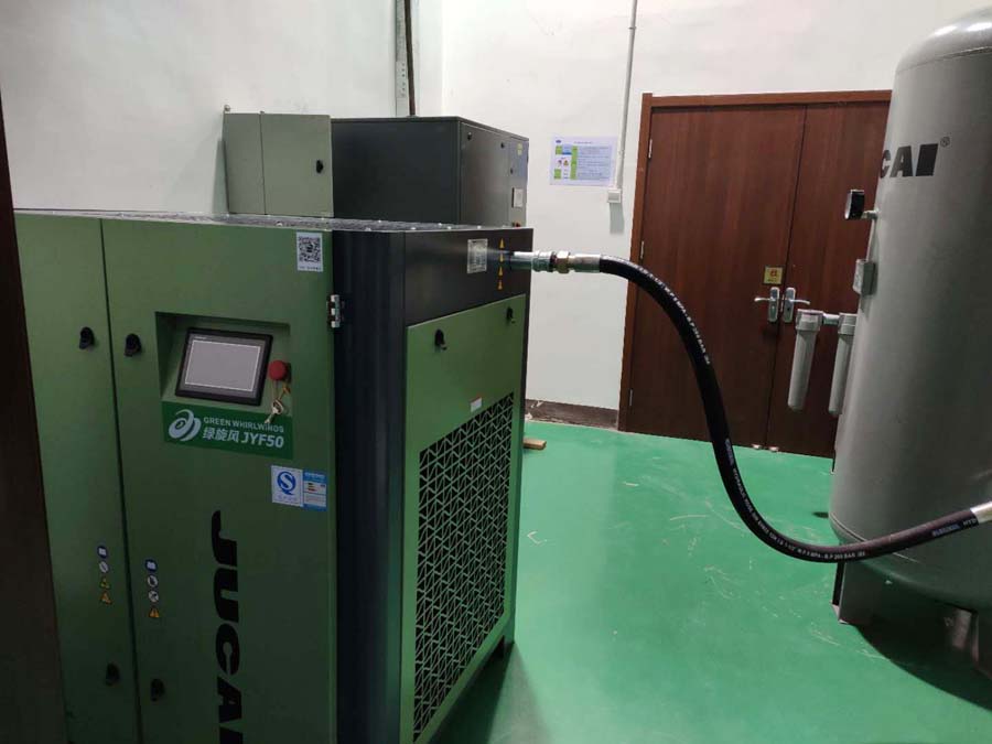 2020年2月19日,JUCAI空壓機公司與河北漢光有限責任公司的工作人員通過溝通,漢光重工因加快生產(chǎn)醫(yī)用口罩產(chǎn)能需要安裝空壓機供氣的需求,JUCAI空壓機公司馬上響應,全力配合支持,所有商務流程簡化,以最快的速度為客戶備貨、安排物流運輸,安裝調試、滿足生產(chǎn)需求。